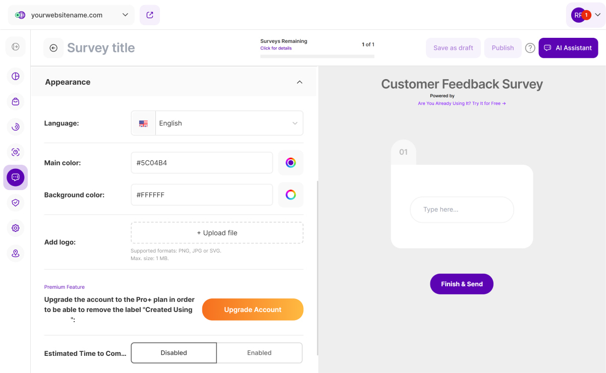 - Main color: Choose the main color of your survey to match your company identity and website.