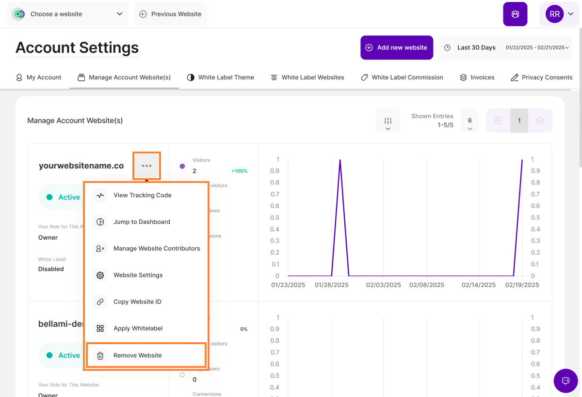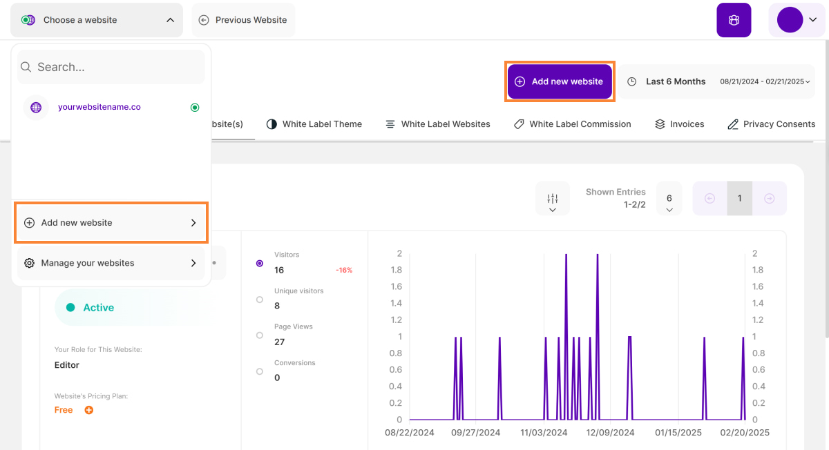 Note: In order to apply the deal to a different website, you will have to delete the current website where you have applied the AppSumo plan so you can have the option to apply that slot again to a different website. Unfortunately, it cannot be downgraded to FREE.