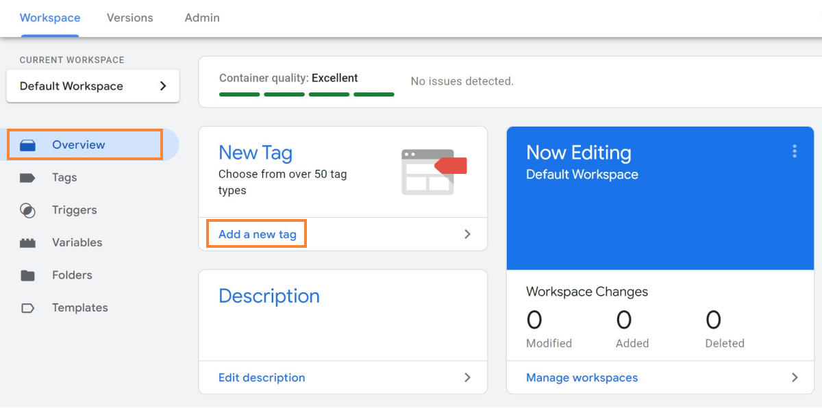 3. Go to Overview and click Add a new tag (or go to Tags and click on New).