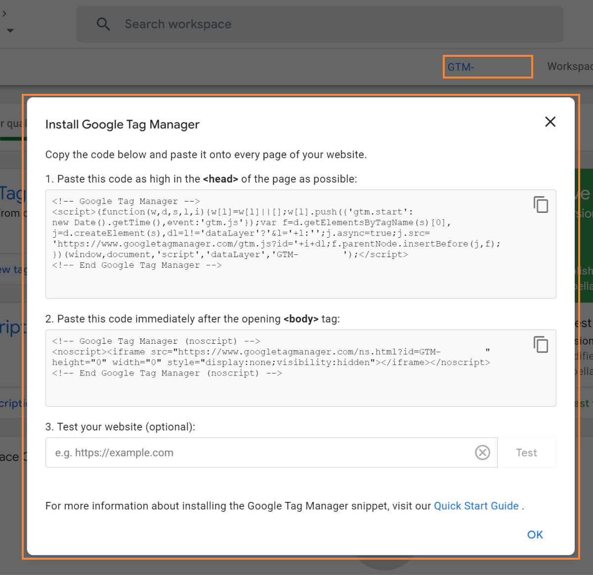 5. Go back to installation screen in our app or navigate to Website Settings > Tracking Code (if you chose to install it at a later time). Copy your Website ID.
